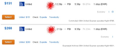 She thought I was out of my mind.  Oh, I’m in my mind – alright.  I have a whole team of people in there dedicated to making sure I don’t get screwed by the airlines.  Lookie here United people…  I’m flying United because I was a loyal Continental customer.  Continental never tried to charge me $260 then move me to the $151 flight.  What kind of crap is that?